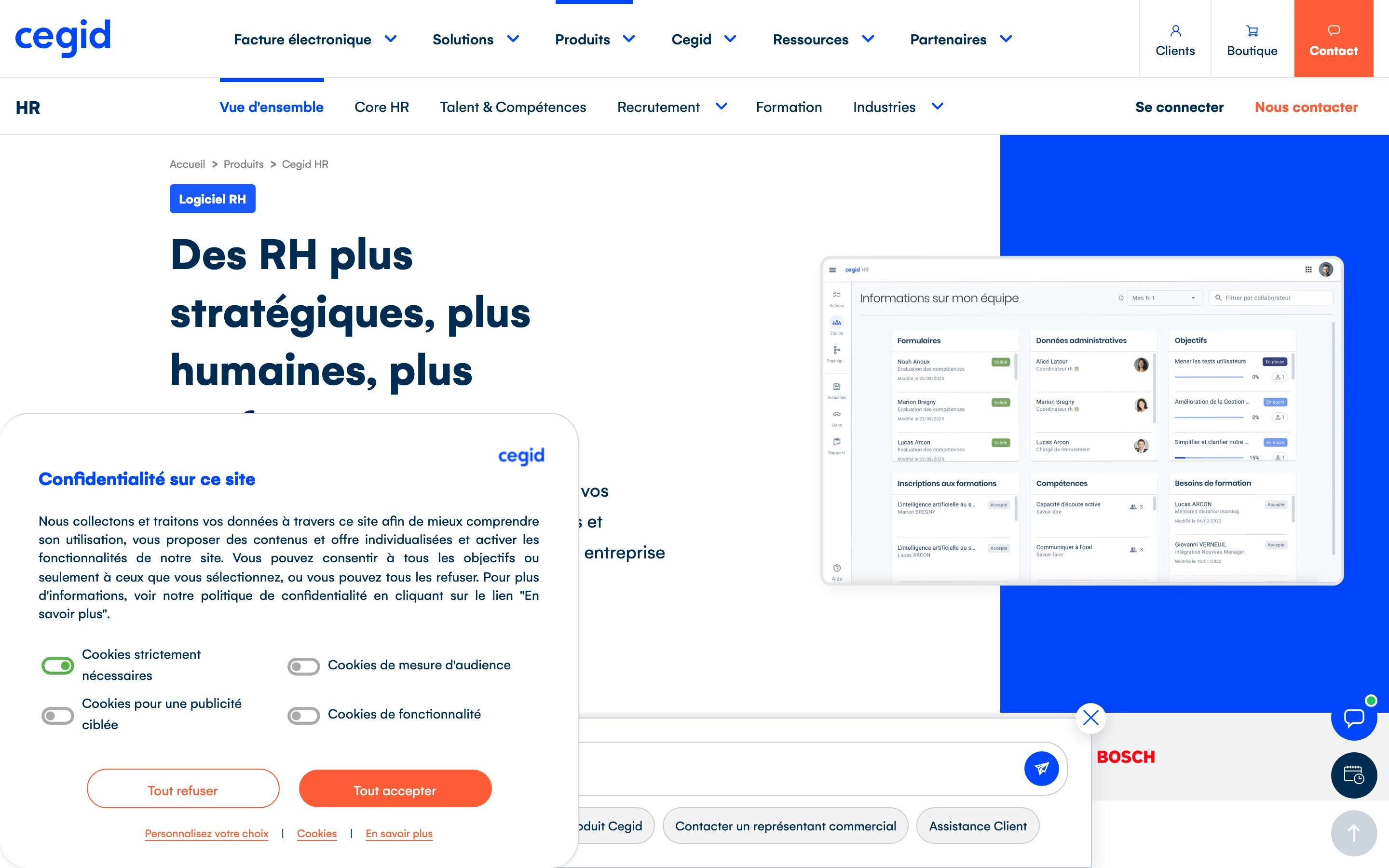 Cegid HR, issu du rachat de Talentsoft en 2021, est l'un des leaders européens des solutions de Gestion du Capital Humain (HCM). La suite proposé un Core HR agile, un module Talent Acquisition pour le recrutement, Talent Management pour le pilotage des compétences et de la performance, ainsi qu'un module Learning qui couvre TMS, LMS, LCMS et bibliotheque de contenus.