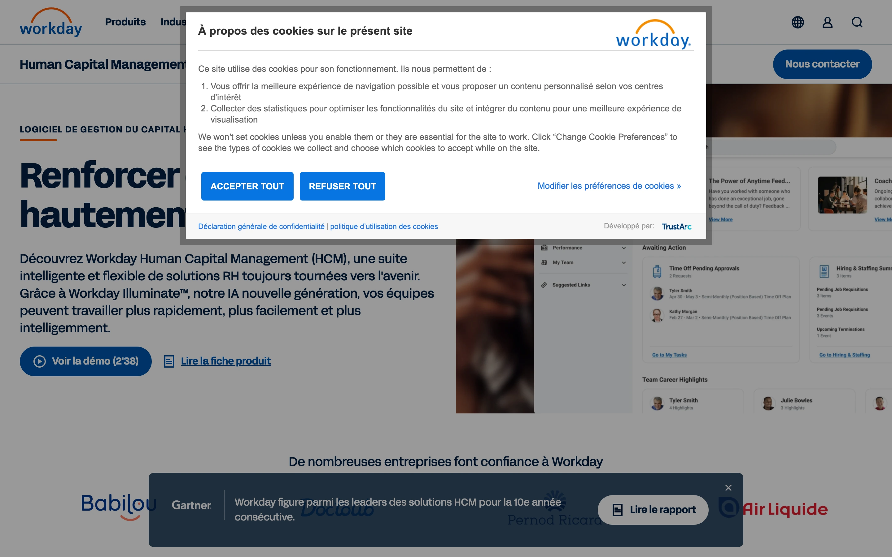 Workday est la référence internationale sur le segment des grandes entreprises multi-pays. Sa solution couvre l'intégralité du cycle de vie de l'employé, de l'embauche à la retraite, avec des fonctionnalités avancées de planification de la relève, de gestion de la performance et d'analyse prédictive. La plateforme se distingue par sa vision unifiée des données salariées et par la qualité de ses tableaux de bord en temps réel.