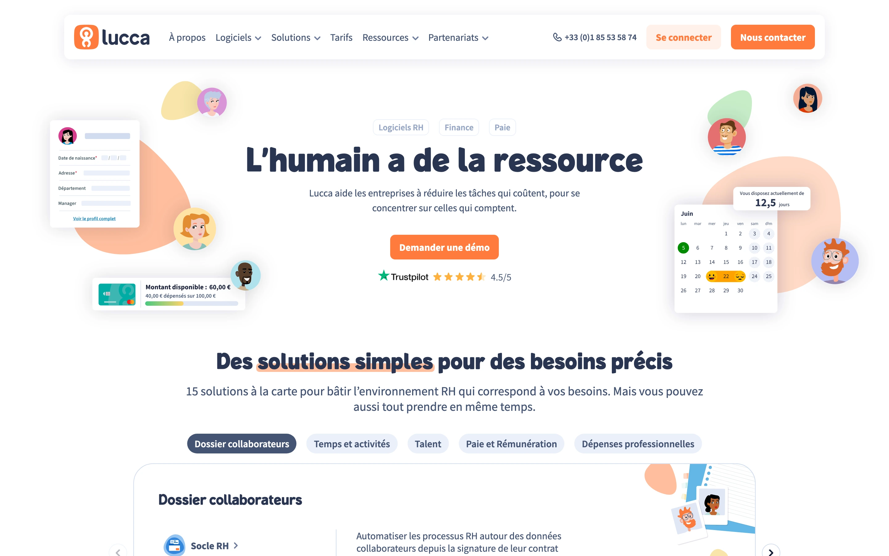 Top pour : PME et ETI françaises déjà clientes Lucca ou en recherche d'une suite modulaire simple a deployer.