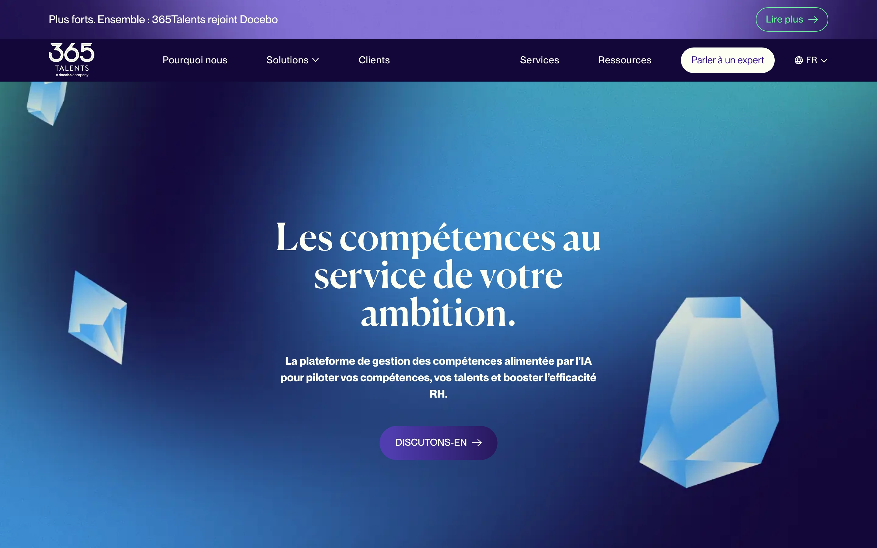 365Talents est une plateforme française basee sur l'intelligence artificielle, utilisée par plus d'un million de collaborateurs dans des grandes entreprises comme SNCF, Orange, Eiffage Construction ou Segula. La solution combine détection automatique des compétences, validation humaine et analytics en temps réel pour transformer des données fragmentees en intelligence stratégique.