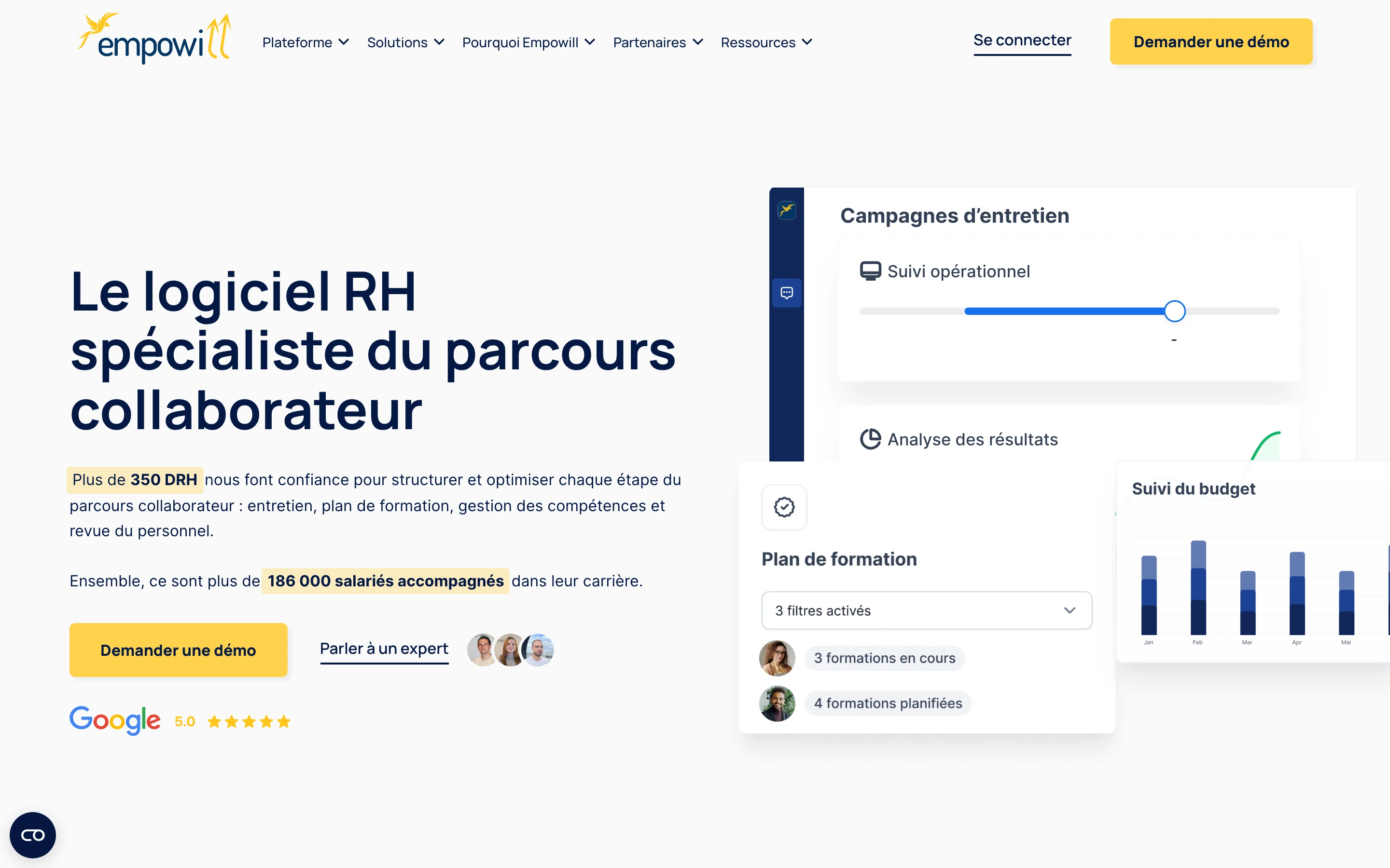 - ROI rapide : jusqu'à 50 % de temps administratif en moins, meilleure anticipation des recrutements et baisse du turnover. Note Google 5/5.